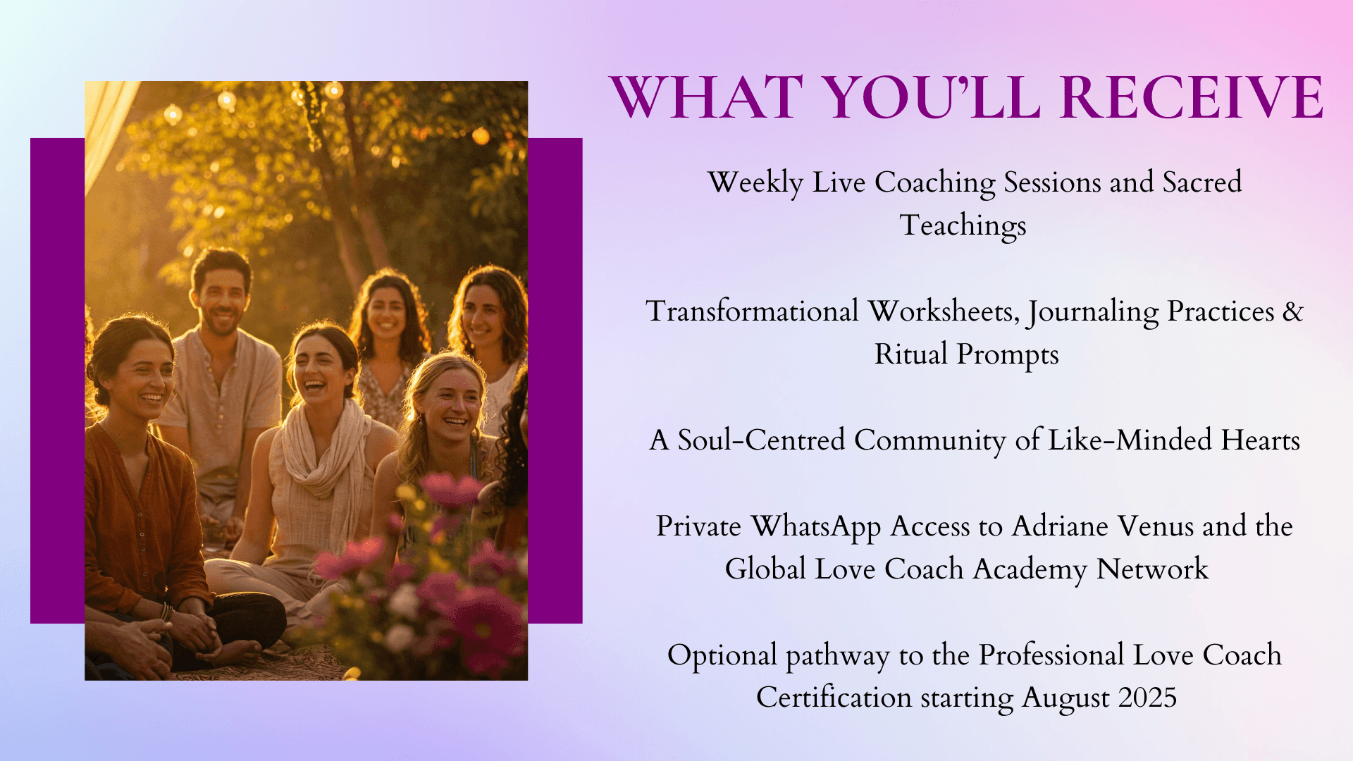 Connect with ADRIANE VENUS and the Global Love Coach Academy HERE