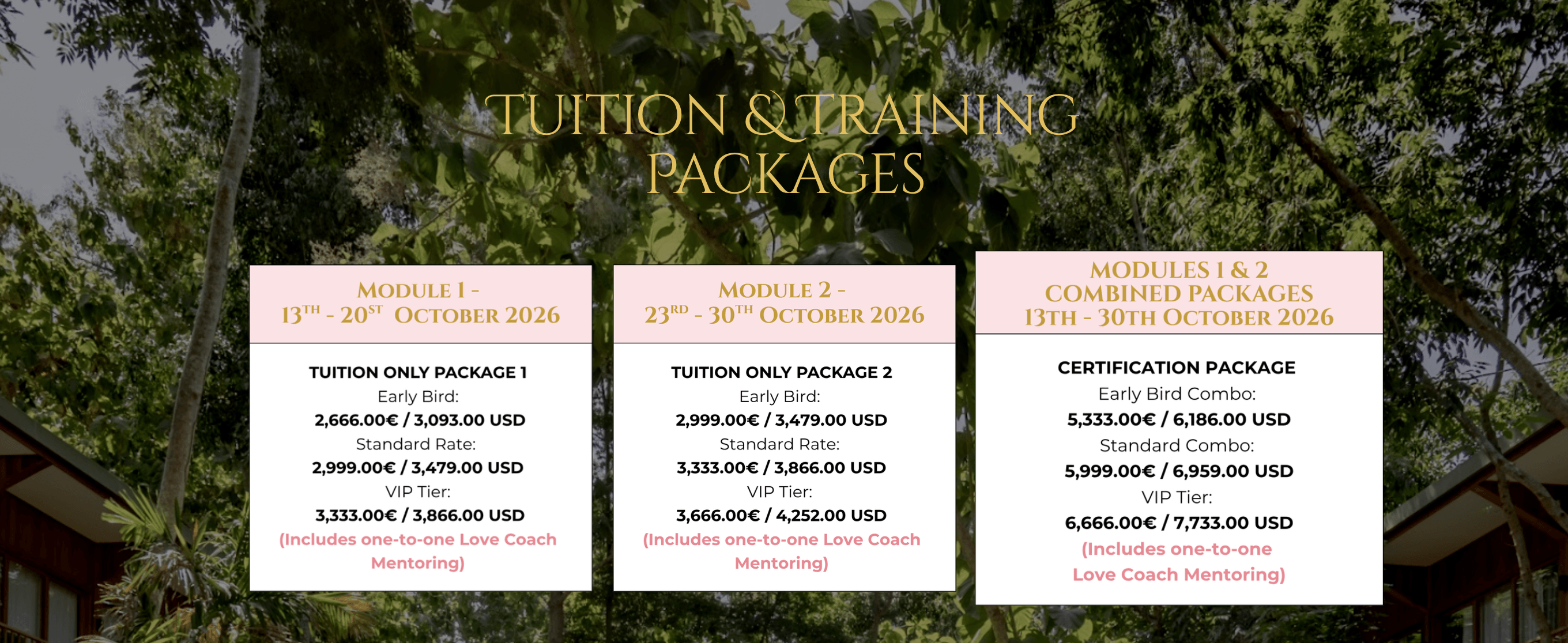 for TRAINEES, PROSPECTS, COUPLES & SINGLES