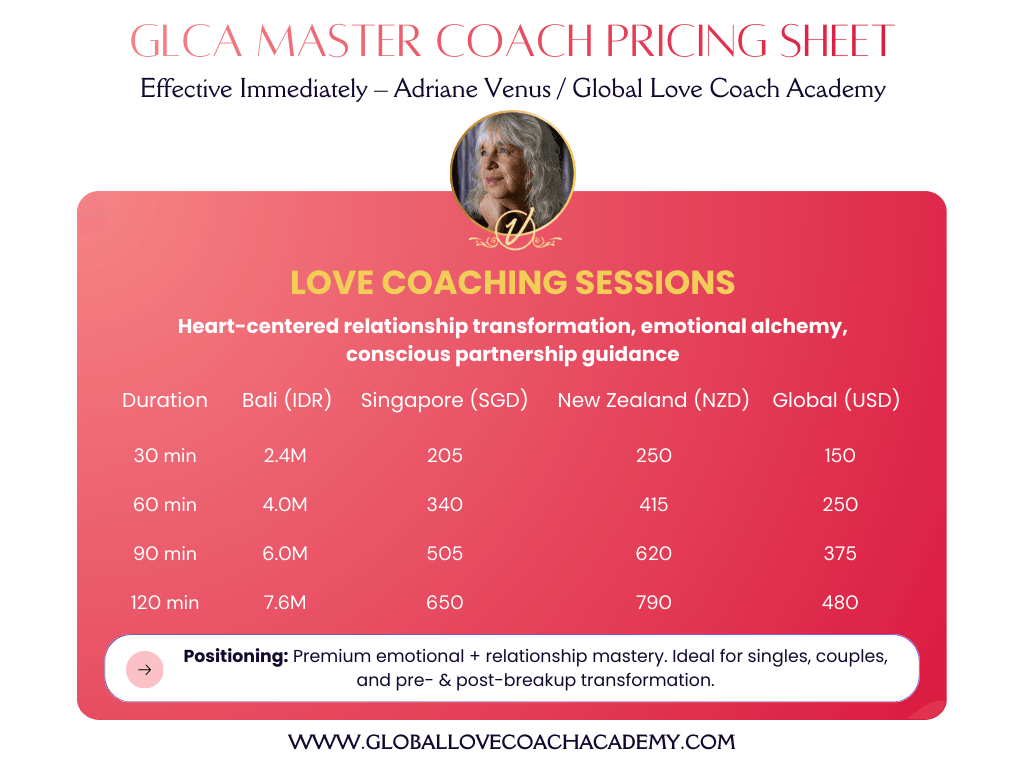 Whether you’re single, navigating relationship changes, or seeking a deeper connection in your current partnership, I offer personalised coaching, sacred retreats, and VIP sessions to support your evolution in love and life.